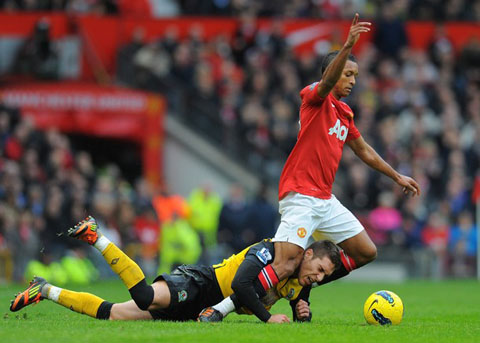 ประตู 1-2 จากจังหวะทำเกมส์ขึ้นมาทางฝั่งขวาของ อันโตนิโอ วาเลนเซีย แล้วเปิดเข้ากลางแต่กองหลังแบล็คเบิร์น เคลียร์มาเข้าทาง ราฟาเอล เปิดต่อมาให้ ดิมิทาร์ เบอร์บาตอฟ โหม่งเข้าไป นาทีที่ 52